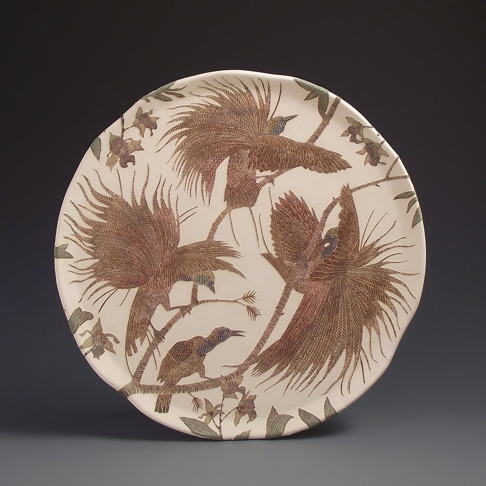 Raggiana birds of paradise & orchids ceramic sgraffito wall art